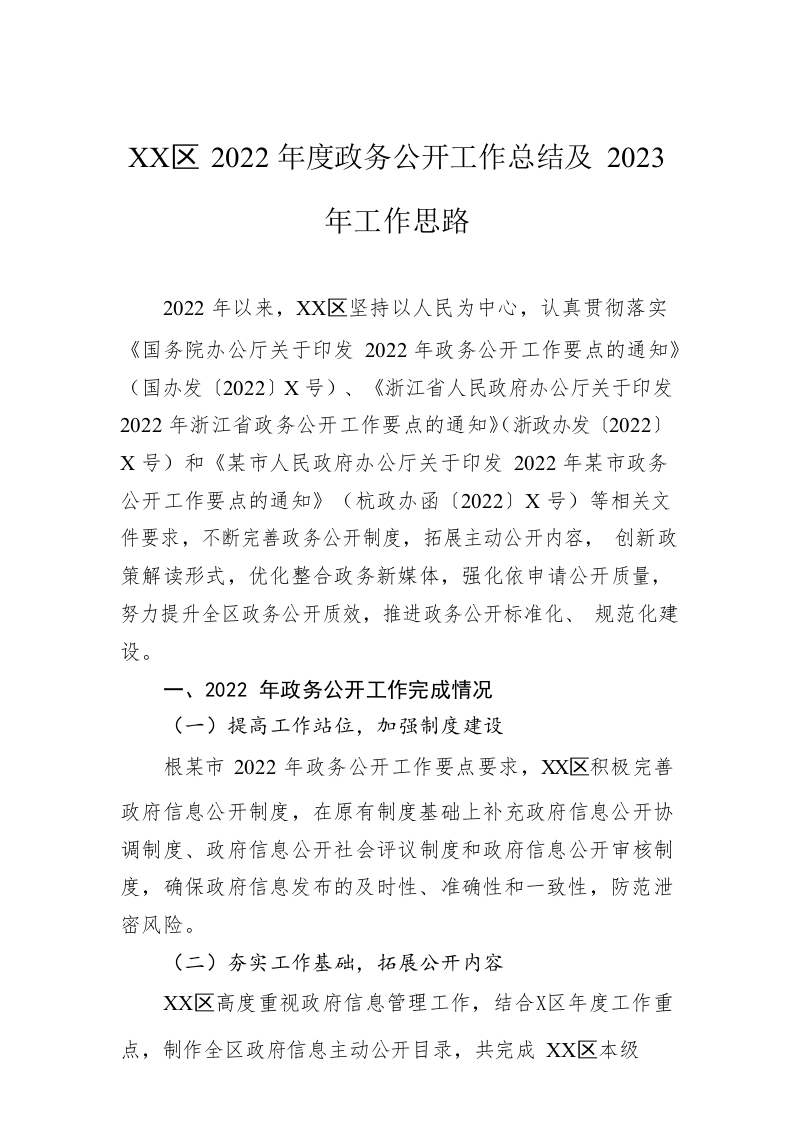 / XX区2022年度政务公开工作总结及2023年工作思路