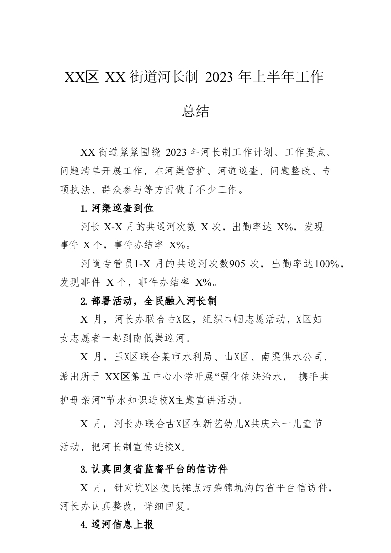 / XX区XX街道河长制2023年上半年工作总结(20230627)