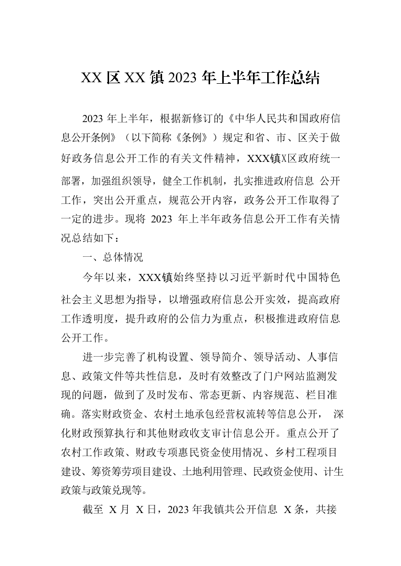 XX区XX镇2023年上半年政务公开工作总结(20230629)