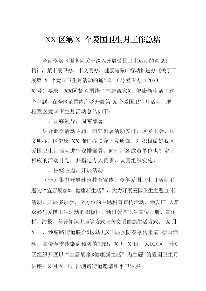 / XX区第35个爱国卫生月工作总结(20230512)