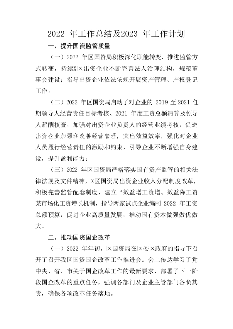 / XX区国资局2022年工作总结