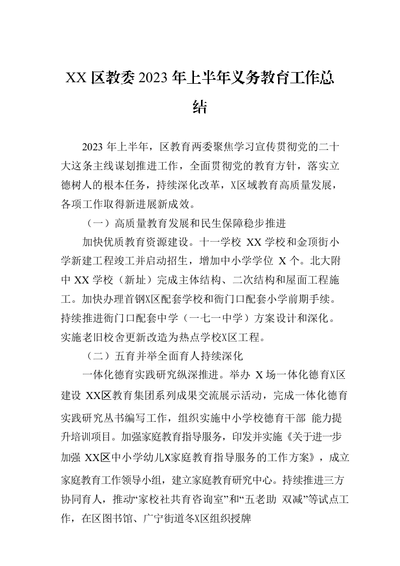 / XX区教委2023年上半年义务教育工作总结(20230710)