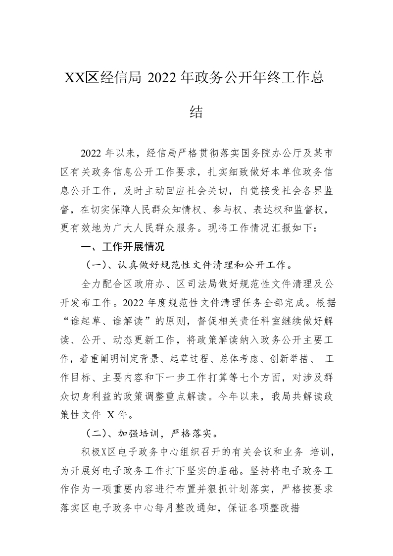 / XX区经信局2022年政务公开年终工作总结(20221209)