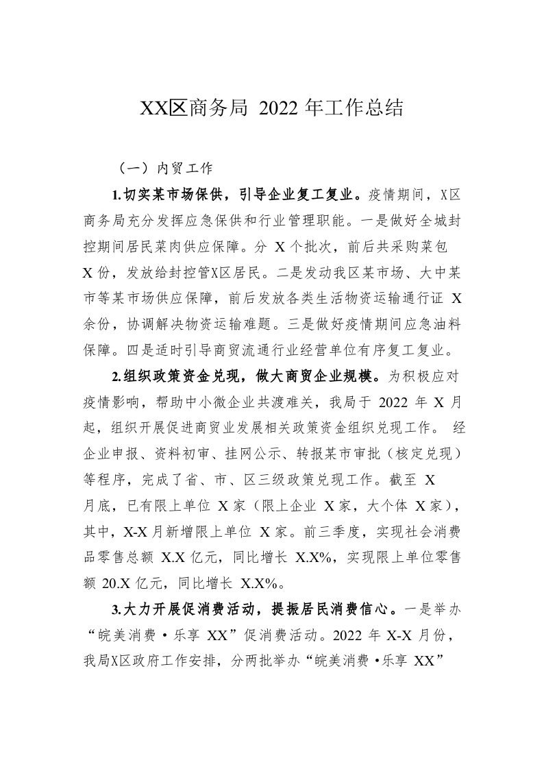 XX区商务局2022年工作总结暨2023年工作谋划(20221122)