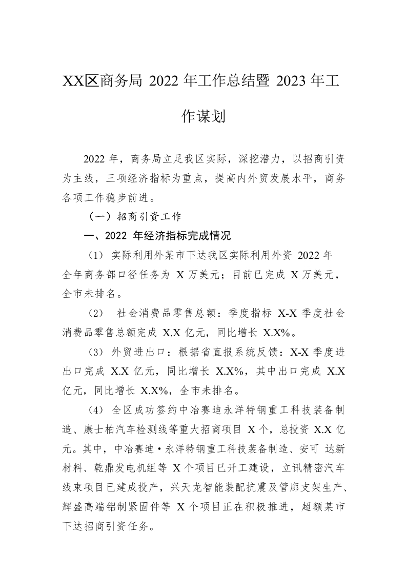 / XX区商务局2022年工作总结暨2023年工作谋划