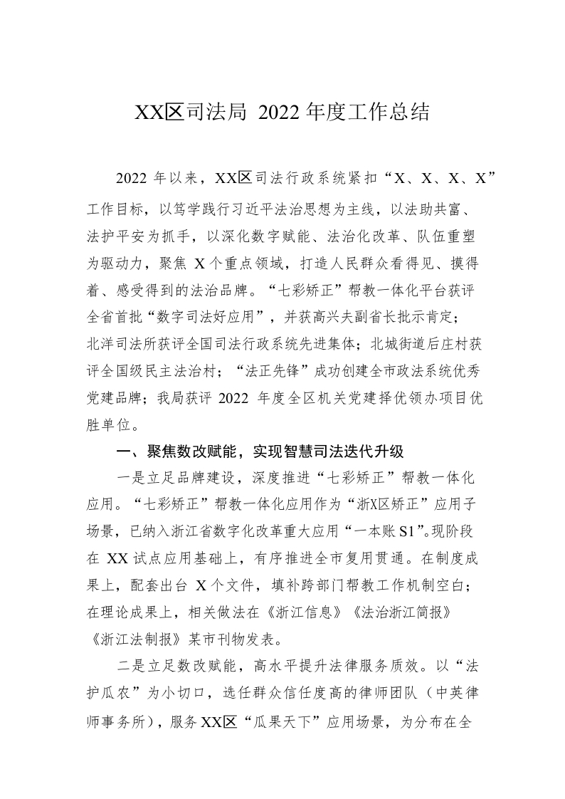/ XX区司法局2022年度工作总结(20230109)