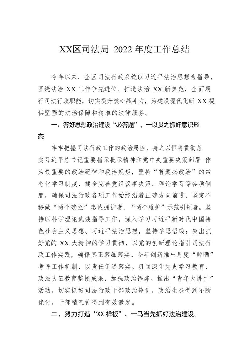 / XX区司法局2022年度工作总结