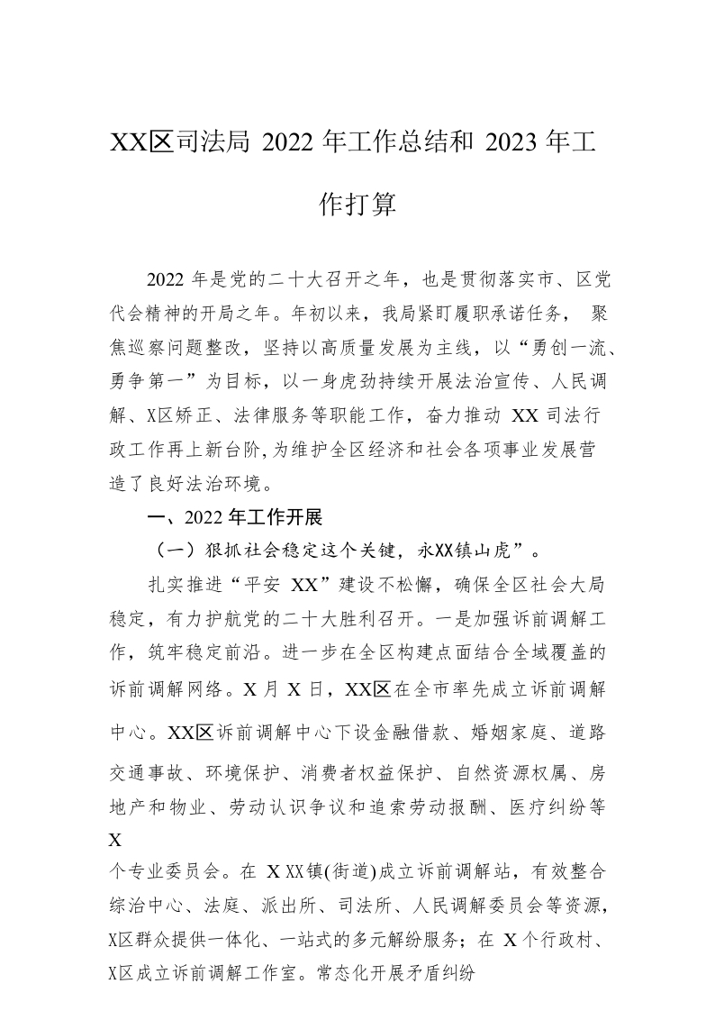 / XX区司法局2022年工作总结和2023年工作打算(20221206)