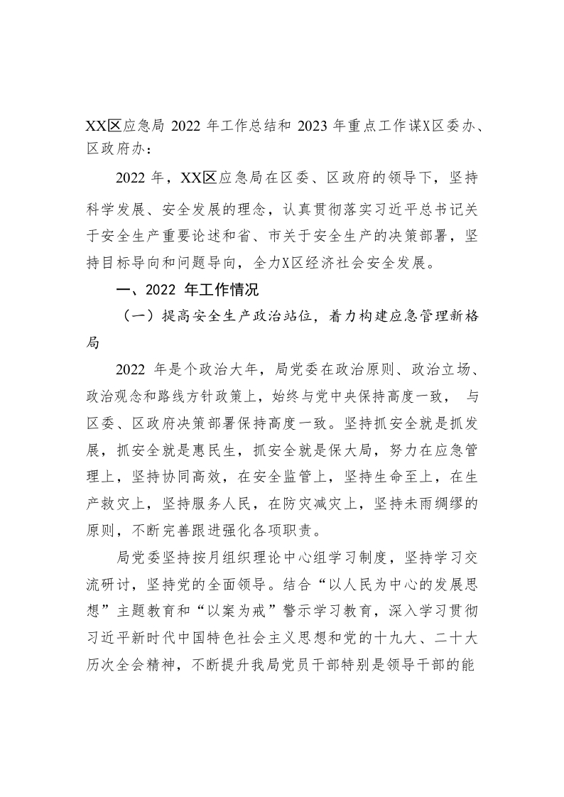 / XX区应急局2022年工作总结和2023年重点工作谋划