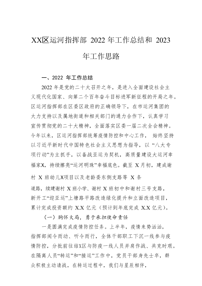 / XX区运河指挥部2022年工作总结和2023年工作思路