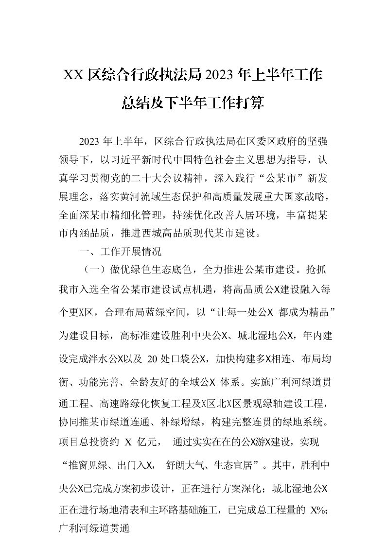 / XX区综合行政执法局2023年上半年工作总结及下半年工作打算(20230802)