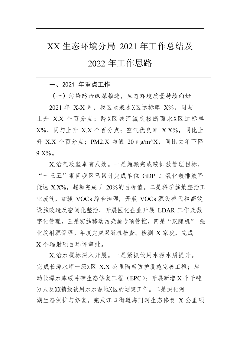 / XX生态环境分局2021年工作总结及2022年工作思路