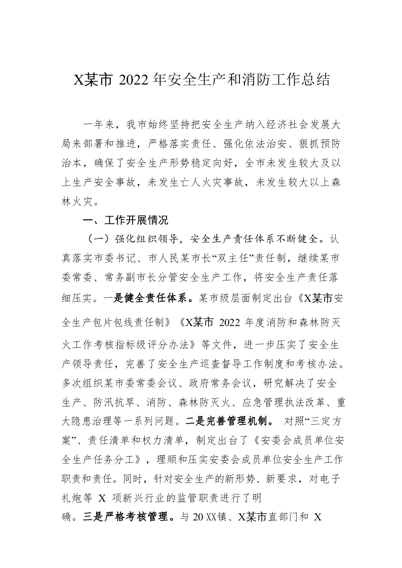 / XX市2022年安全生产和消防工作总结(20221201)