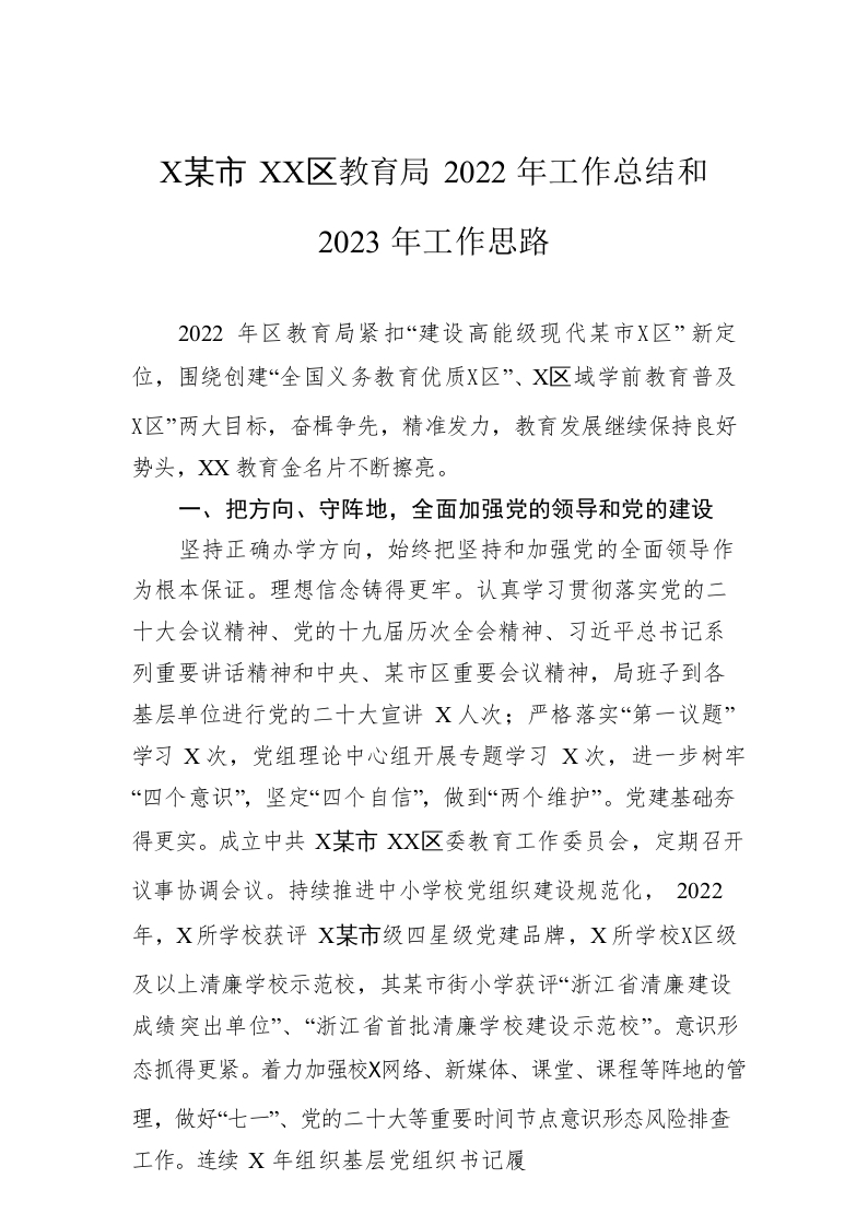 / XX市XX区教育局2022年工作总结和2023年工作思路