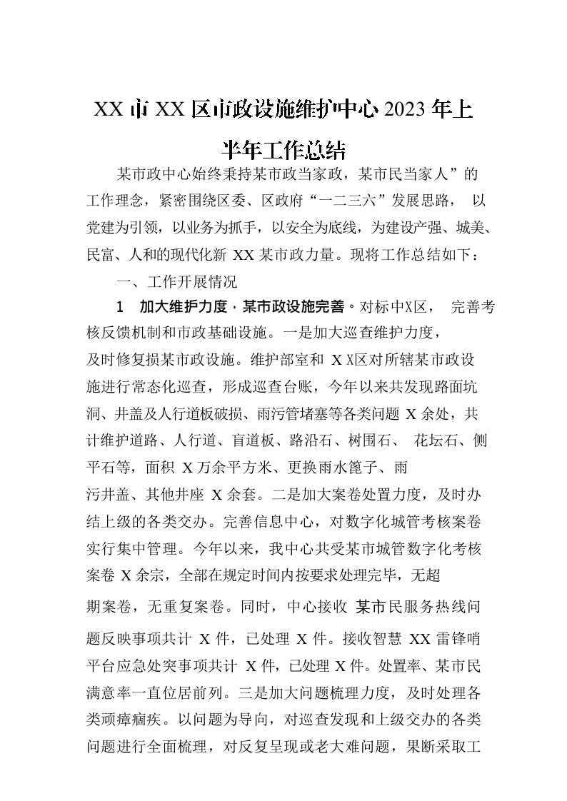 / XX市XX区市政设施维护中心2023年上半年工作总结(20230703)