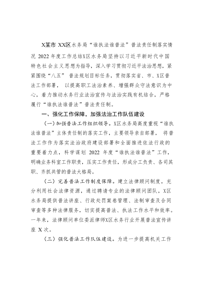 / XX市XX区水务局“谁执法谁普法”普法责任制落实情况2022年度工作总结(20220930)