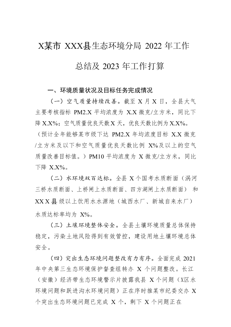 / XX市XX县生态环境分局2022年工作总结及2023年工作打算