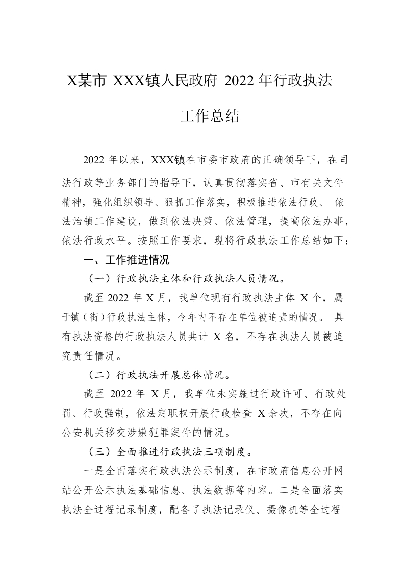 / XX市XX镇人民政府2022年行政执法工作总结(20230103)