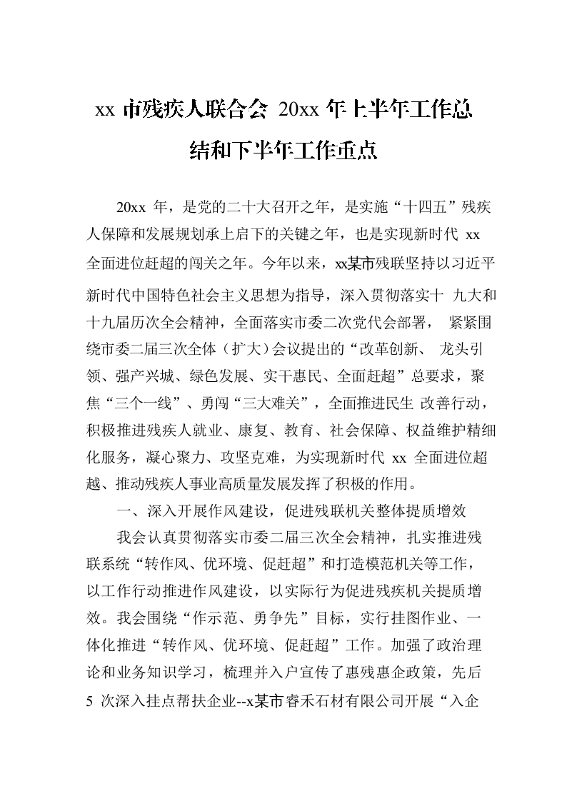 / xx市残疾人联合会 20xx年上半年工作总结和下半年工作重点