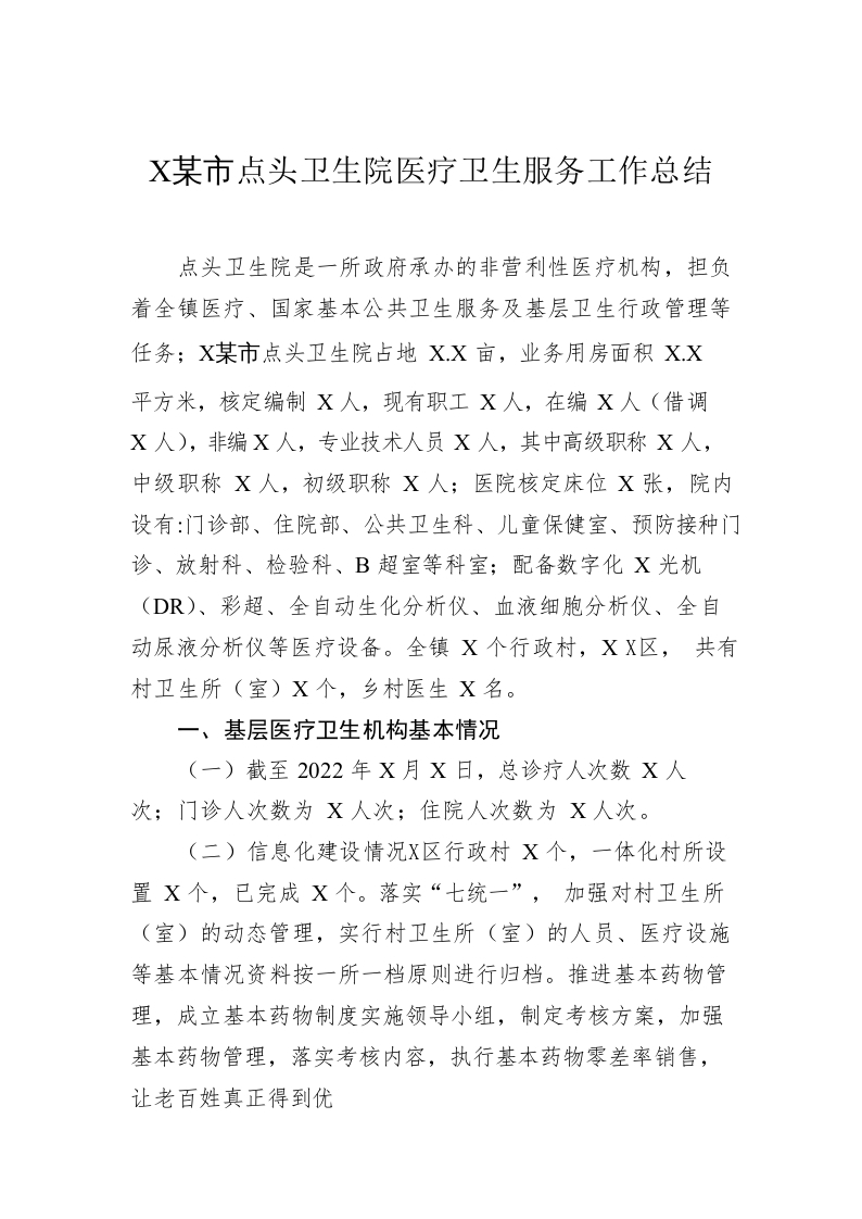 / XX市点头卫生院医疗卫生服务工作总结