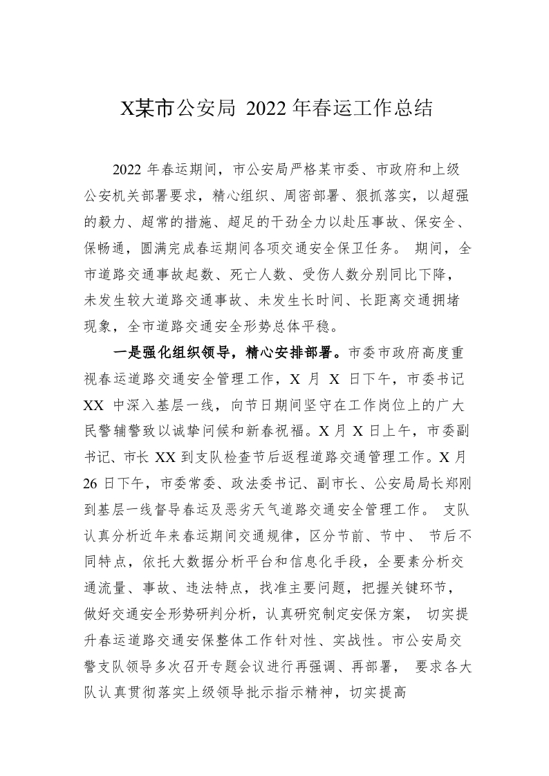 / XX市公安局2022年春运工作总结(20220323)