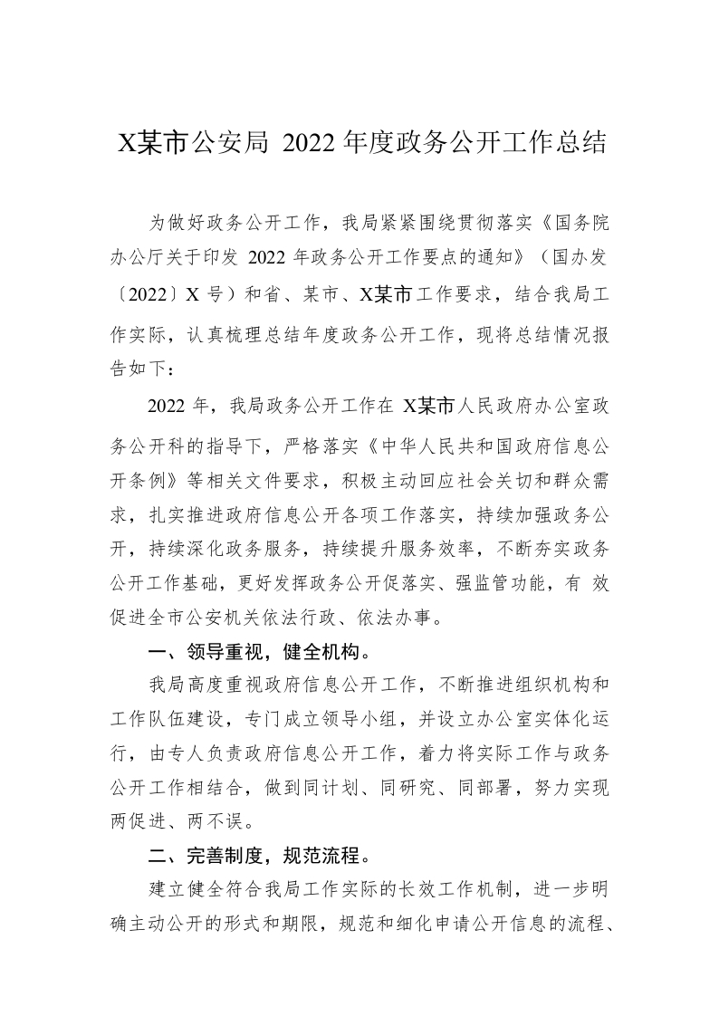 / XX市公安局2022年度政务公开工作总结(20230103)