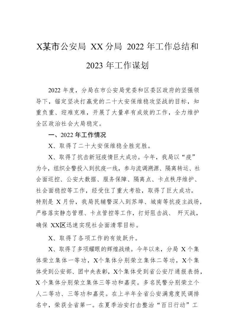 / XX市公安局XX分局2022年工作总结和2023年工作谋划(20221221)
