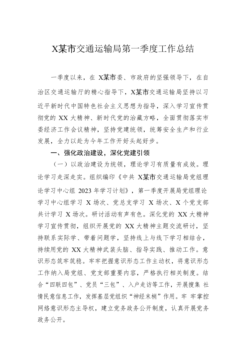 / XX市交通运输局第一季度工作总结