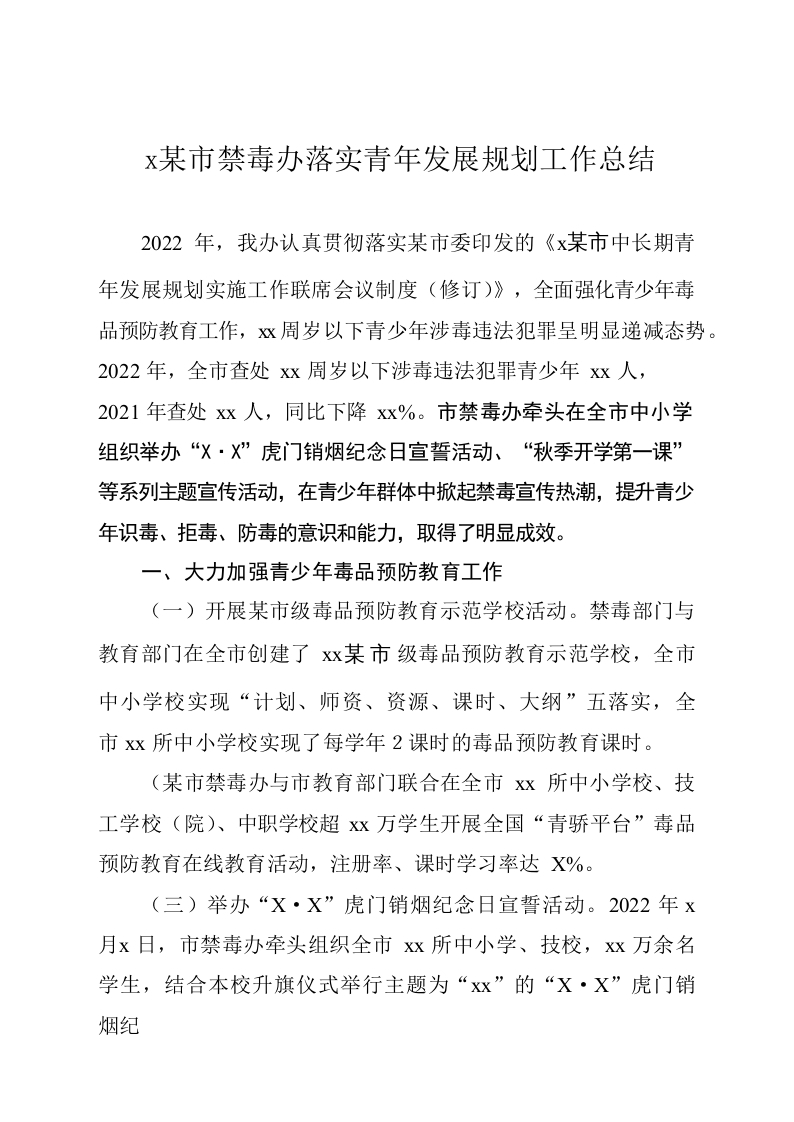 / xx市禁毒办落实青年发展规划工作总结