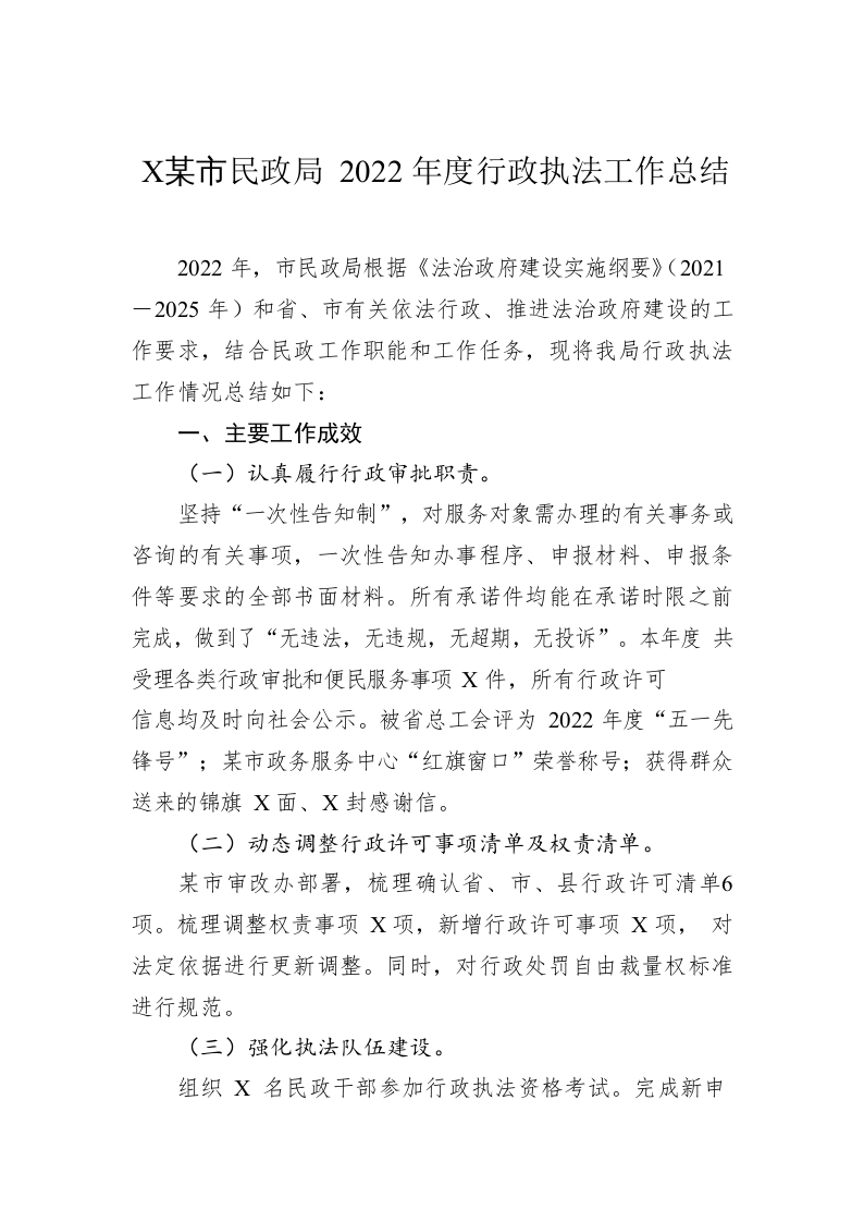 / XX市民政局2022年度行政执法工作总结(20221213)