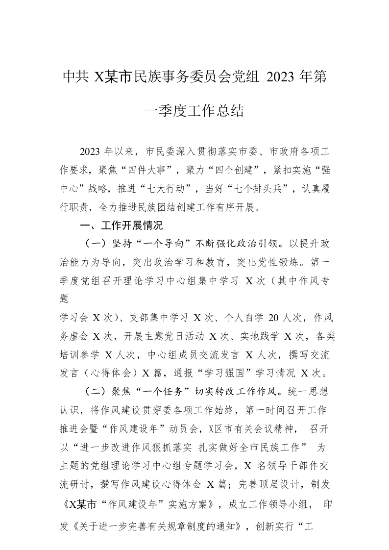 / XX市民族事务委员会党组2023年第一季度工作总结(20230516)