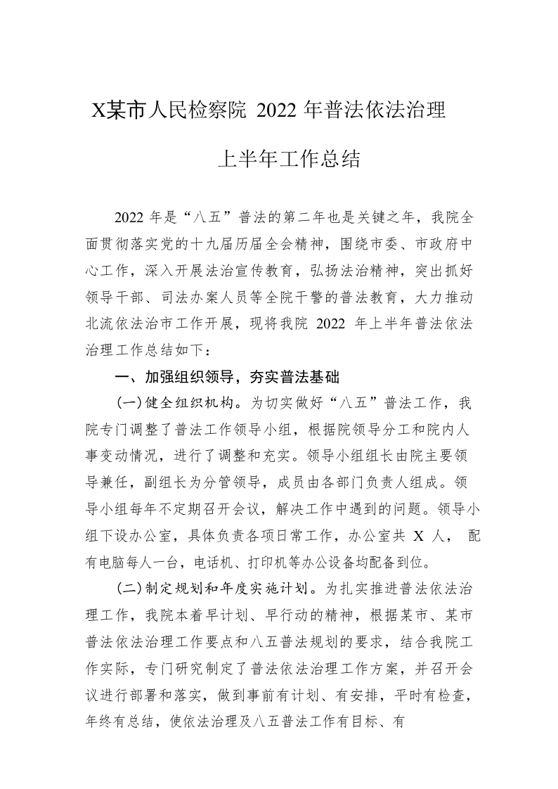/ XX市人民检察院2022年普法依法治理上半年工作总结(20220716)