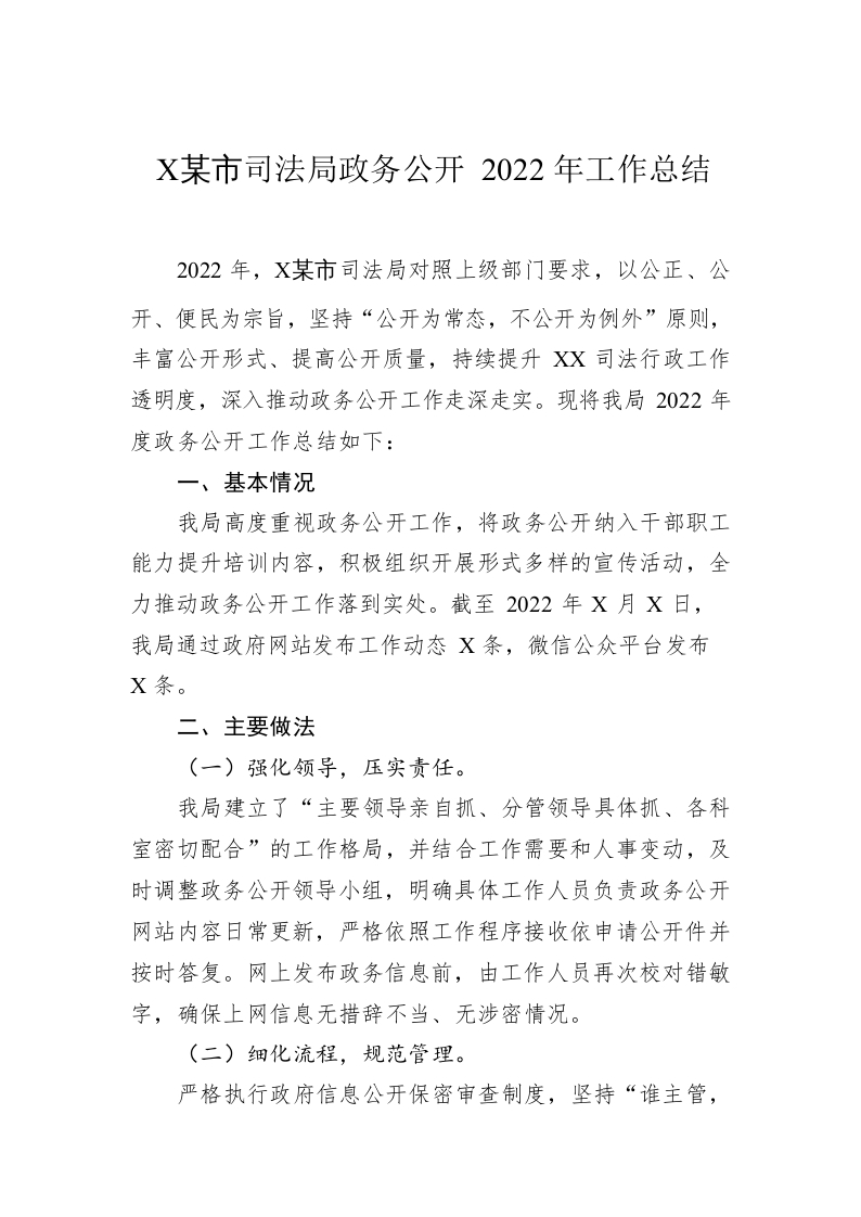 / XX市司法局政务公开2022年工作总结(20230109)