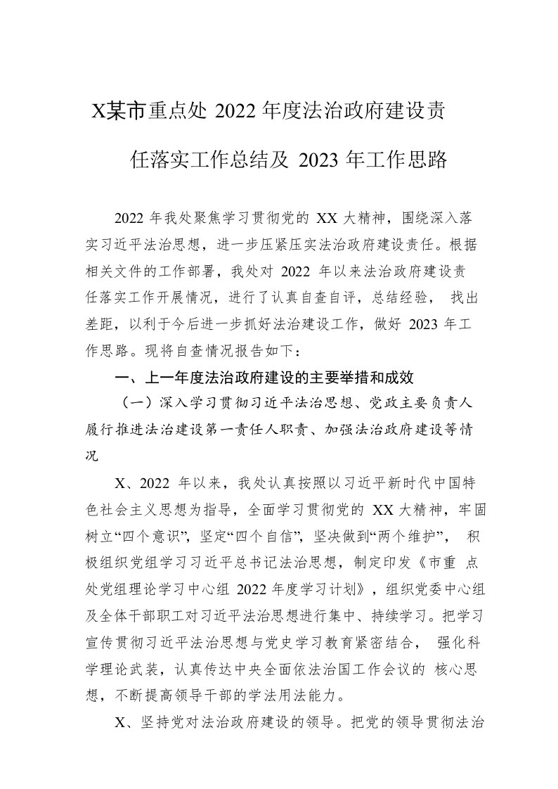 XX市重点处2022年度法治政府建设责任落实工作总结及2023年工作思路