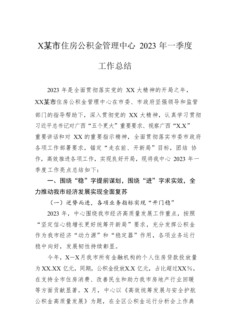 / XX市住房公积金管理中心2023年一季度工作总结