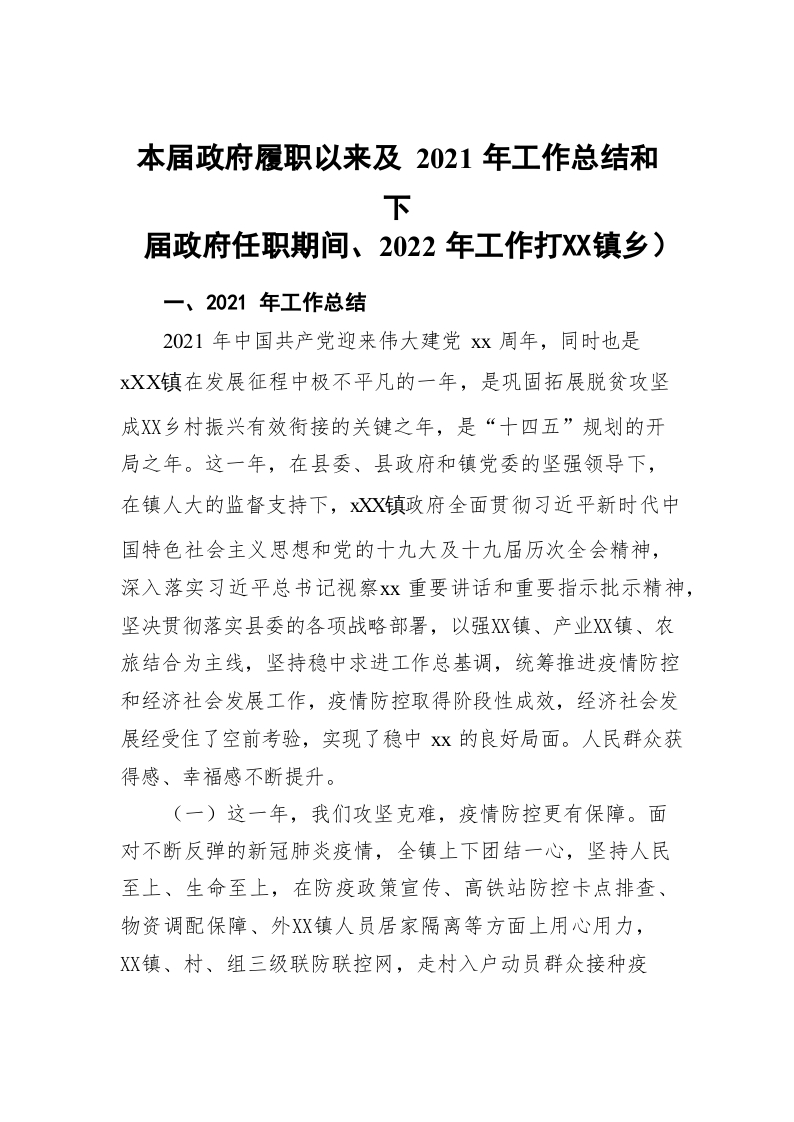 / 本届政府履职以来及2021年工作总结和下届政府任职期间、2022年工作打算(镇乡)
