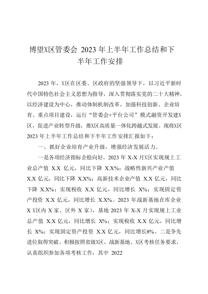 / 博望高新区管委会2023年上半年工作总结和下半年工作安排