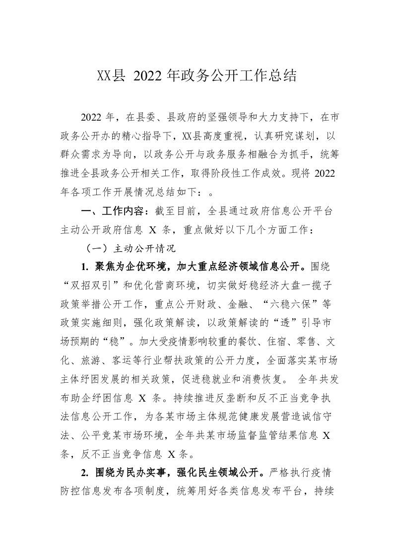 / xx县2022年政务公开工作总结(20221222)