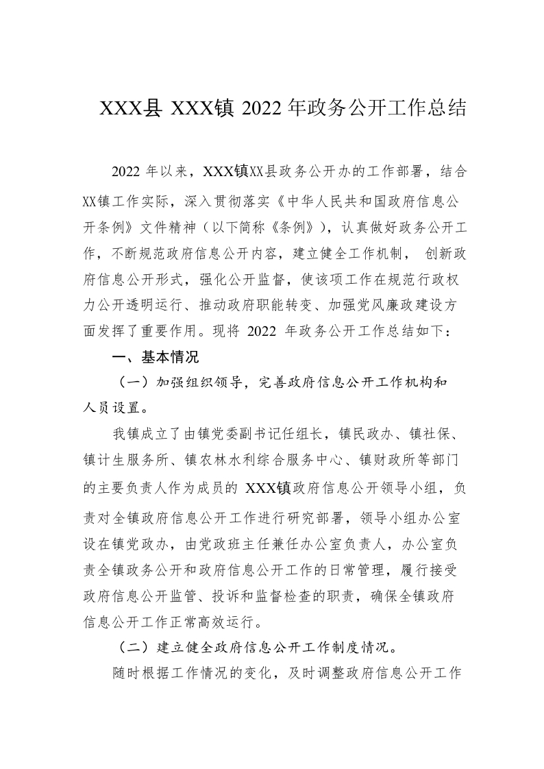 / XX县XX镇2022年政务公开工作总结(20221219)