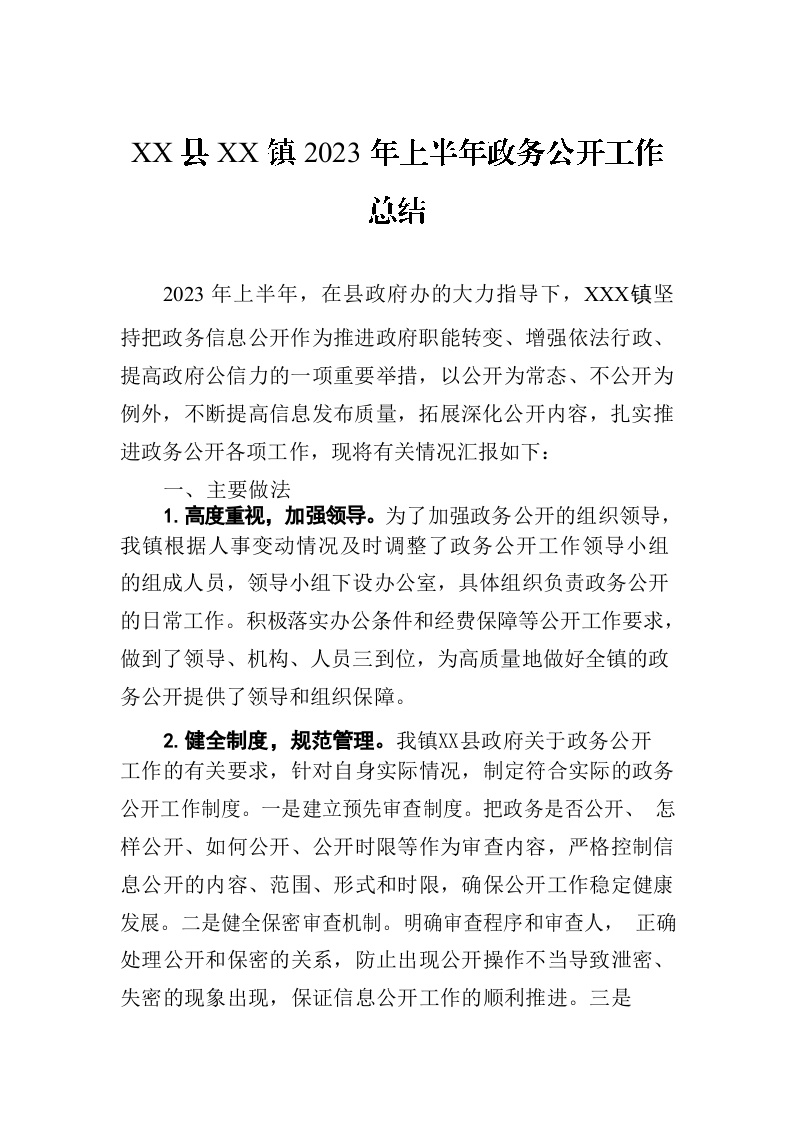 / XX县XX镇2023年上半年政务公开工作总结(20230705)