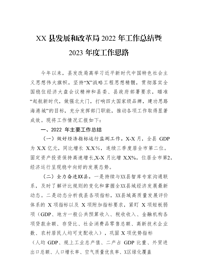 / XX县发展和改革局2022年工作总结暨2023年度工作思路