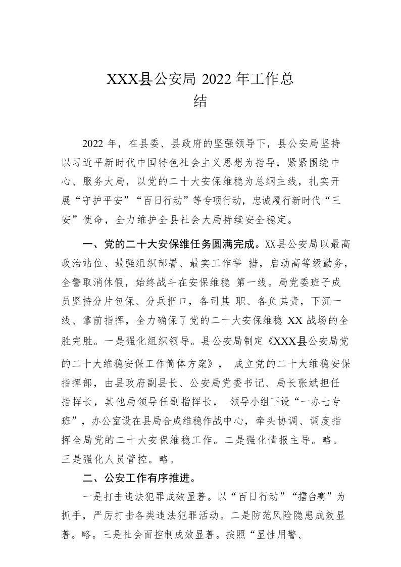 / XX县公安局2022年工作总结(20221108)