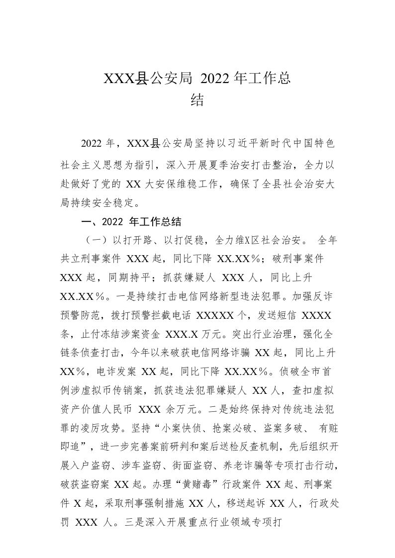/ XX县公安局2022年工作总结