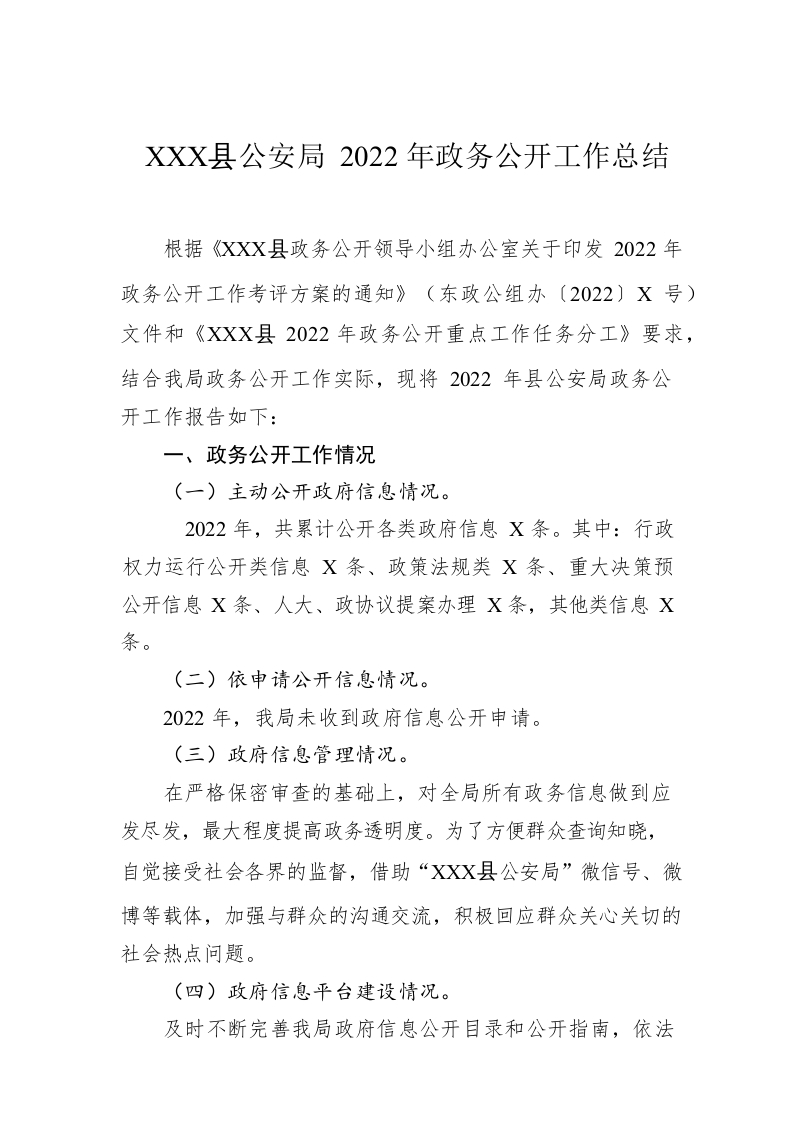 / XX县公安局2022年政务公开工作总结(20221219)