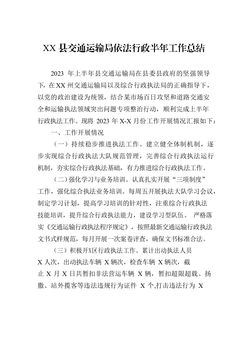 / XX县交通运输局依法行政半年工作总结(20230721)