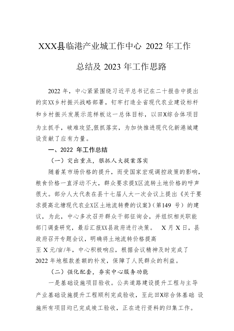 / XX县临港产业城工作中心2022年工作总结及2023年工作思路
