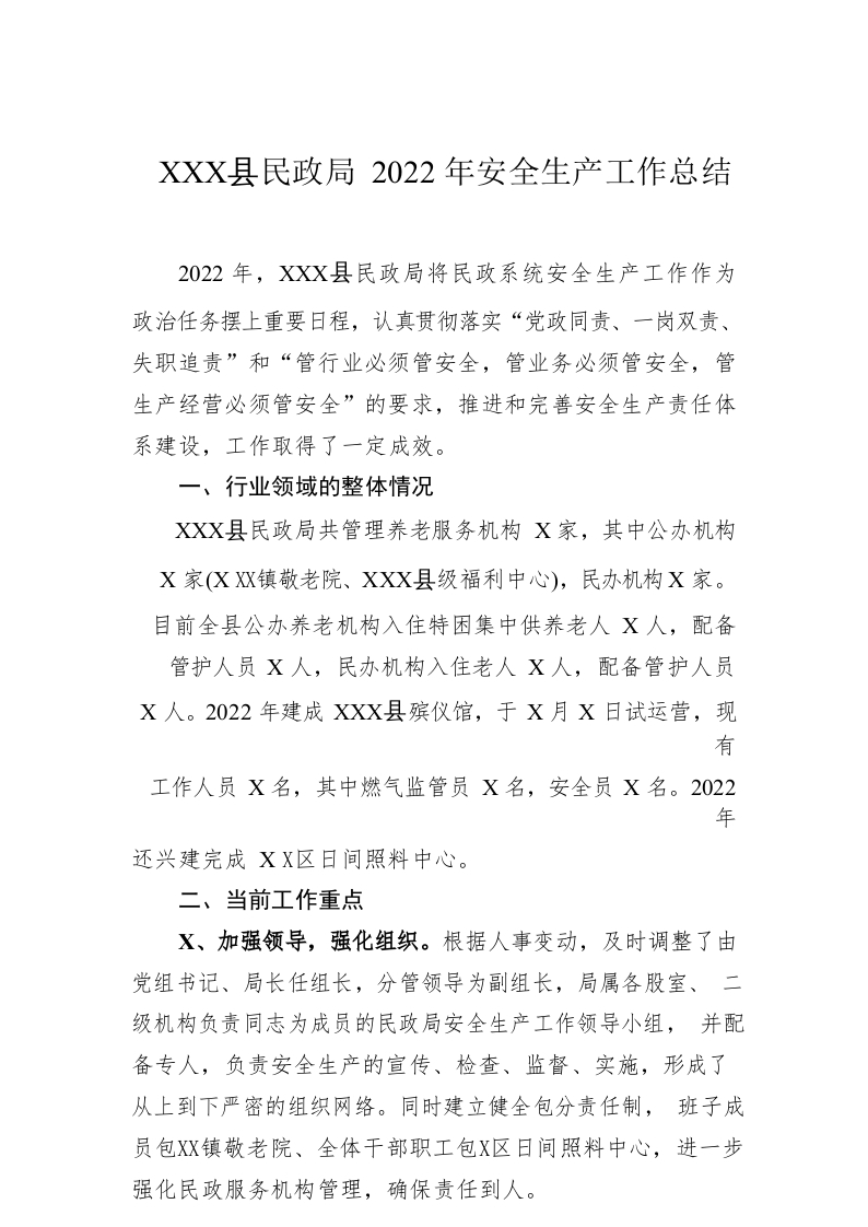 / XX县民政局2022年安全生产工作总结(20221019)