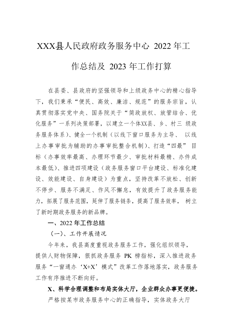 / XX县人民政府政务服务中心 2022年工作总结及2023年工作打算(20221114)