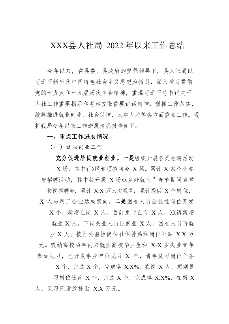 / XX县人社局2022年以来工作总结(20221130)