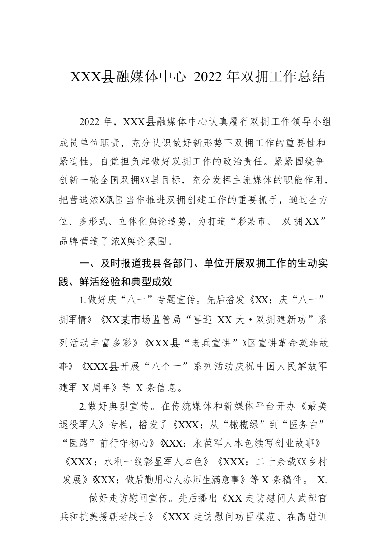 / XX县融媒体中心2022年双拥工作总结